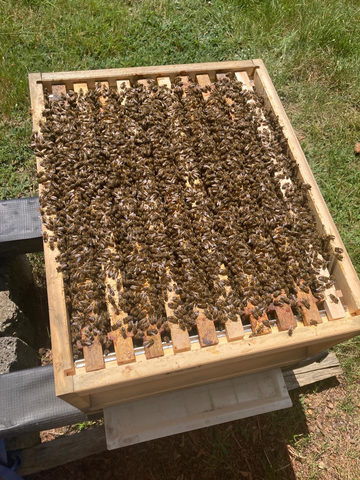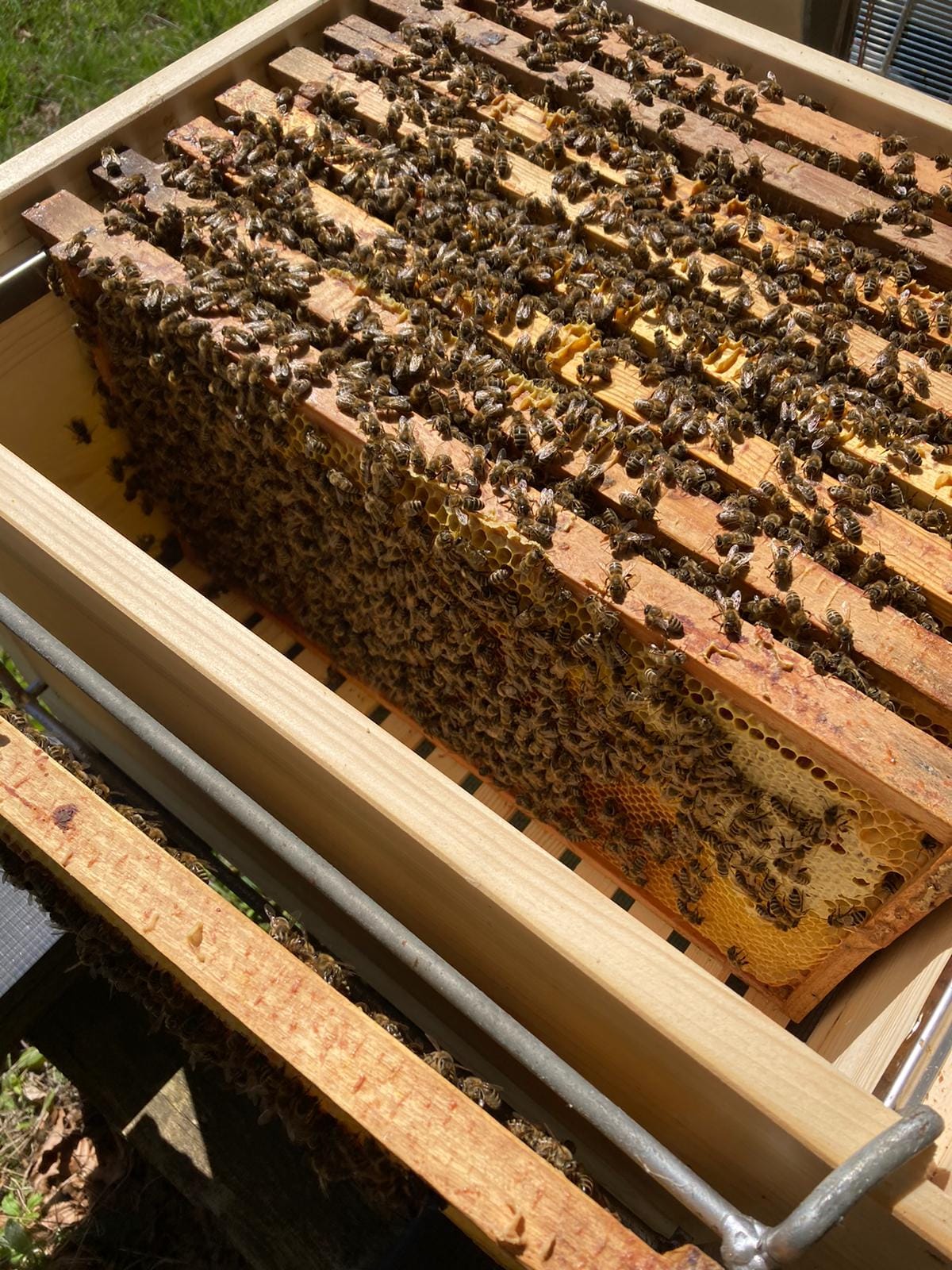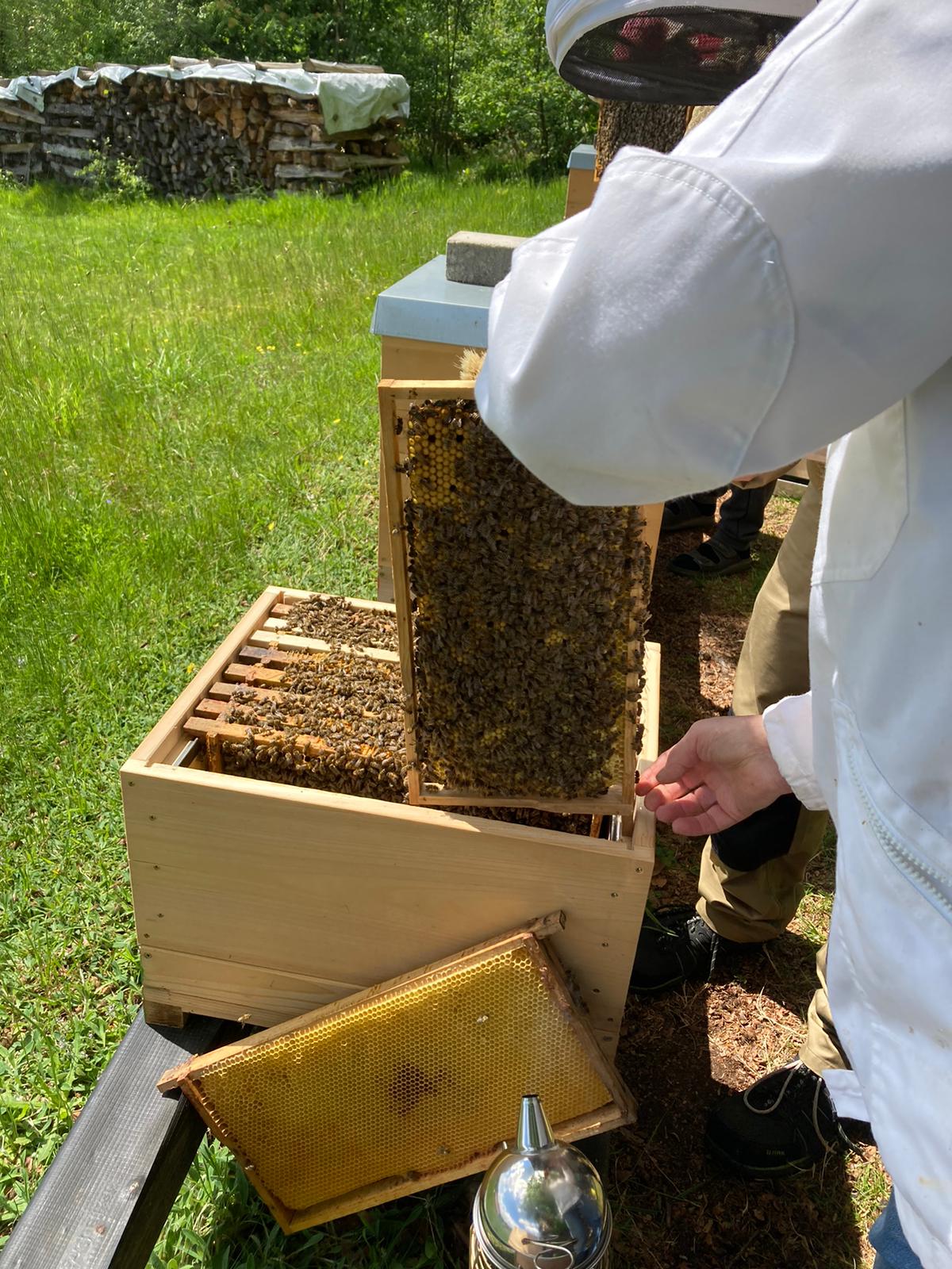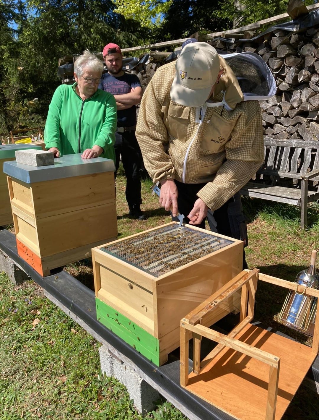 Diese Nervosität legt sich allerdings schnell beim arbeiten mit den Bienen, sobald man merkt wie sanftmütig unsere Bienen heute sind.